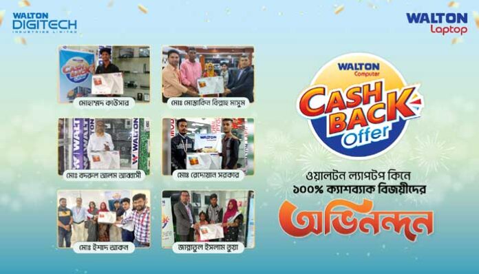 উল্লেখ্য, প্রযুক্তিপণ্যের ক্রেতাদেরকে আরো সাশ্রয়ী মূল্যে কম্পিউটার, ল্যাপটপসহ বিভিন্ন ডিজিটাল ডিভাইস প্রদানে আবারও শতভাগ পর্যন্ত ক্যাশব্যাক সুবিধা নিয়ে এসেছে ওয়ালটন ডিজি-টেক ইন্ডাস্ট্রিজ লিমিটেড। গত ৮ ফেব্রুয়ারি ওয়ালটন কম্পিউটার ক্যাশব্যাক অফারের উদ্বোধন করেন ডাক, টেলিযোগাযোগ ও তথ্যপ্রযুক্তি প্রতিমন্ত্রী জুনাইদ আহমেদ পলক। শুরু থেকেই এ অফার ক্রেতাদের মাঝে দারুণ সাড়া ফেলে।