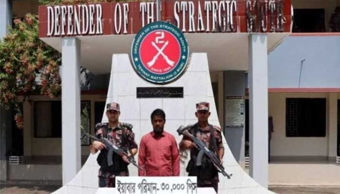 এমন সংবাদের ভিত্তিতে শাহপরীরদ্বীপ বিওপি’র সীমান্ত সুরক্ষা নৌ টহলদলকে সর্তক করা হলে তারা সতর্কতার সাথে টহল পালনকালে টহলদল কিছুক্ষণ পর দেখতে পায়, বঙ্গোপসাগরের মোহনায় মিয়ানমারের একটি নৌকা থেকে বাংলাদেশী একটি মাছ ধরার নৌকায় অবস্থানরত একজন ব্যক্তির নিকট একটি পোটলা হস্তান্তর করছে।
