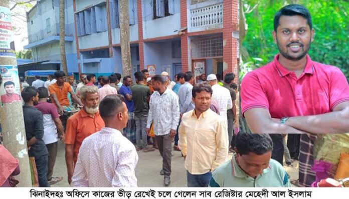 এদিকে রমজান মাসে সকাল ৯ টা থেকে বিকাল সাড়ে ৩ টা পর্যন্ত সরকারি অফিস চলার কথা থাকলেও নিয়ম মানছেন না হরিণাকুন্ডরু সাব-রেজিস্ট্রার মেহেদী আল ইসলাম। নিজের ইচ্ছেমত তিনি অফিসে যান, চলেন নিজের খেয়াল খুশিমত। জেলায় সাব রেজিষ্টার সংকটের মুহূর্তে হরিণাকুন্ডরু সাব-রেজিস্ট্রার মেহেদী আল ইসলামকে মহেশপুর উপজেলার অতিরিক্তি দায়িত্ব দেওয়া হয়েছে। সেই হিসেবে গত মঙ্গলবার মহেশপুর উপজেলায় জমি রেজিস্ট্রির দ্বায়িত্ব পান তিনি। সেবা প্রত্যাশীদের অভিযোগ সকাল ৯ টার সময় অফিস চালু হওয়ার কথা থাকলেও তিনি মহেশপুরে গেছেন বেলা ১১ টায়। অফিসে পৌছে মাত্র দুই ঘন্টা অফিস করে আবার তিনি বাড়ি চলে আসেন। অথচ ঘটনার দিন অফিসের সামনে অন্তত দেড়’শ দলিল ক্রেতা-বিক্রেতা অপেক্ষা করছিলেন। তাদের রেজিষ্ট্রির কাজ সমাধান না করেই তিনি বাড়ির পথ ধরেন।