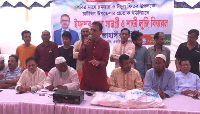 বৃহস্পতিবার (২১ মার্চ) দুপুর ১২টার দিকে একটিভ ফাউন্ডেশনের আয়োজনে চাটখিল পৌরসভার ৯টি ওয়ার্ডে এসব ইফতার, খাদ্য সামগ্রী ও শাড়ি লুঙ্গি বিতরণ করেন চাটখিল উপজেলা চেয়ারম্যান আলহ্বাজ জাহাঙ্গীর কবির।