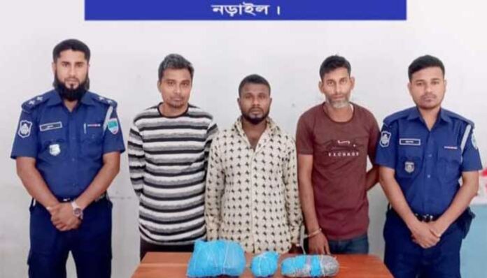 গ্রেফতারকৃত মাদক ব্যবসায়ী- মোঃ ইউসুফ মুসল্লী (৩৫) নড়াইল জেলার লোহাগড়া থানাধীন মঙ্গলহাটা গ্রামের মৃত রউফ মুন্সির ছেলে, মোঃ জিয়াউর কাজী (৩৫) একই গ্রামের তবিবর কাজীর ছেলে এবং মোঃ নাজমুল শেখ ওরফে নাজু শেখ (৪৬) নড়াইল জেলার সদর থানাধীন নিধিখোলা গ্রামের আমির শেখের ছেলে।