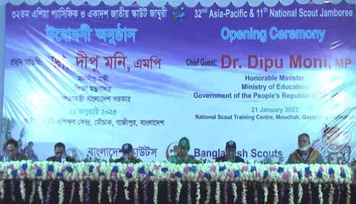 গাজীপুর প্রতিনিধি: গাজীপুরের মৌচাকে ৩২তম এশিয়া প্যাসিফিক রিজিওনাল ও একাদশ জাতীয় স্কাউট জাম্বুরি-২০২৩ শুরু হয়েছে। “সাবাস – শক্তির ফোয়ারা” এই প্রতিপাদ্যকে সামনে রেখে ১৯ জানুয়ারি শুরু হওয়া ৯ দিনব্যাপী এ জাম্বুরী শনিবার সন্ধ্যায় আনুষ্ঠানিক উদ্বোধন করেন শিক্ষামন্ত্রী ডা. দীপু মনি এমপি।