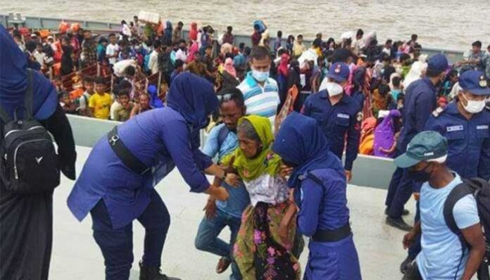 রবিবার (২২ জানুয়ারি) বিকালে নৌবাহিনীর দুটি জাহাজে রোহিঙ্গাদের ভাসানচরে নেওয়া হয়।
