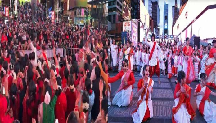 ইমা এলিস, নিউ ইয়র্ক: নিউ ইয়র্কের টাইমস স্কয়ারে বাংলা বর্ষবরণ উদযাপন প্রবাসী বাংলাদেশিরা। ১৩ এপ্রিল শনিবার দুপুরে মঙ্গল শোভাযাত্রার মধ্য দিয়ে বাংলা বর্ষবরণ অনুষ্ঠান শুরু হয়। অনুষ্ঠানে সহস্র কন্ঠে দেশের গান পরিবেশন করেন স্থানীয় শিল্পীরা। তবে বাংলার ঐতিহ্যবাহী লোকগানে হাজার হাজার দর্শক-শ্রোতাদের মাতিয়ে তোলেন প্রখ্যাত কণ্ঠ শিল্পী মমতাজ।