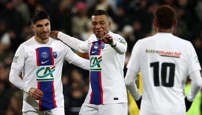 পিএসজির হয়ে প্রথম কোনও ফুটবলার এক ম্যাচে ৫ গোল করলেন। এমবাপের দাপটে মেসির অভাব বুঝতেই পারল না ফরাসি ক্লাব। পুরো সময় মাঠে ছিলেন এমবাপে এবং নেইমার। তাঁদের দাপটে এই প্রতিযোগিতার প্রি-কোয়ার্টার ফাইনালে পৌঁছে গেল পিএসজি। তাদের পরের ম্যাচ ৮ ফেব্রুয়ারি। মার্সেইলির বিরুদ্ধে খেলবে তারা।