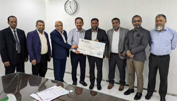 বীমা দাবি নিষ্পত্তি অনুষ্ঠানে প্রাইম ইন্স্যুরেন্স কোম্পানী লিমিটেড এর পরিচালক ও ক্লেইমস এন্ড রি-ইন্স্যুরেন্স কমিটির চেয়ারম্যান মোঃ আব্দুল্লাহ্ জিপিএইচ ইস্পাত লিমিটেড এর ব্যবস্থাপনা পরিচালক মোঃ জাহাঙ্গির আলম এর হাতে উক্ত চেক তুলে দেন।