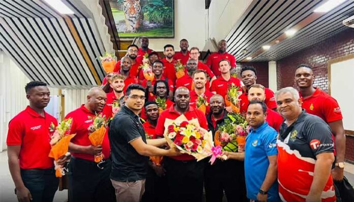 স্পোর্টস ডেস্ক : ৫ ম্যাচের টি-টোয়েন্টি সিরিজ খেলতে বাংলাদেশে এসেছে জিম্বাবুয়ে জাতীয় ক্রিকেট দল। রোববার (২৮ এপ্রিল) দুবাই হয়ে বিকেল ৫টায় অতিথিরা ঢাকায় পৌঁছান। পরবর্তীতে সন্ধ্যার ফ্লাইটে তারা চলে যাবে চট্টগ্রামে। সেখানে আগামী কয়েকদিন অনুশীলন শেষে মূল লড়াইয়ে নামবে সফরকারীরা।