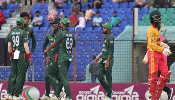 স্পোর্টস ডেস্ক : দুই ম্যাচ হাতে রেখে জিম্বাবুয়ের বিপক্ষে পাঁচ ম্যাচ টি-টোয়েন্টি সিরিজ জয় নিশ্চিত করেছে স্বাগতিক বাংলাদেশ। মঙ্গলবার (৭ মে) সিরিজের তৃতীয় ম্যাচে বাংলাদেশ ৯ রানে হারিয়েছে সফরকারী জিম্বাবুয়েকে। সিরিজের প্রথম দুই ম্যাচ যথাক্রমে- ৮ ও ৬ উইকেটে জিতেছিলো বাংলাদেশ।