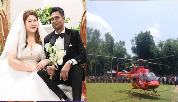 সিরাজগঞ্জে বিদেশি বউ নিয়ে হেলিকপ্টারে বাড়ি ফিরলেন সিঙ্গাপুর প্রবাসী