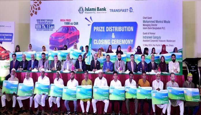 কর্পোরেট ডেস্ক : ইসলামী ব্যাংক-ট্রান্সফাস্ট রেমিট্যান্স ক্যাম্পেইনের বিজয়ীদের মাঝে রোববার (১২ মে, ২০২৪) ঢাকার প্যান প্যাসিফিক সোনারগাঁও হোটেলে আনুষ্ঠানিকভাবে পুরুস্কার হস্তান্তর করা হয়।