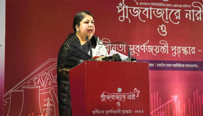 বুধবার (২২ মে) রাজধানীর প্যান প্যাসিফিক সোনারগাঁও হোটেলে বাংলাদেশ সিকিউরিটিজ অ্যান্ড এক্সচেঞ্জ কমিশন আয়োজিত ‘পুঁজিবাজারে নারী ও স্বাধীনতা সুবর্ণজয়ন্তী পুরস্কার- ২০২৩’ অনুষ্ঠানে প্রধান অতিথির বক্তব্যে তিনি এ কথা বলেন।