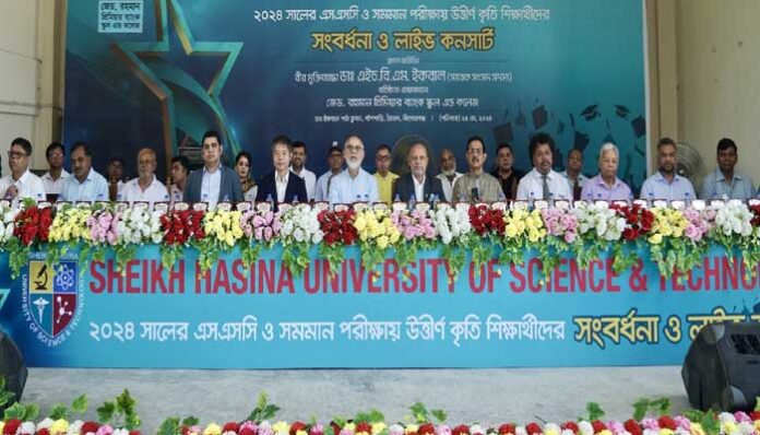 এই উপলক্ষে শেখ হাসিনা ইউনিভার্সিটি অব সায়েন্স অ্যান্ড টেকনোলজি’র ক্যাম্পাসে ২০২৩ সালের এইচএসসি এবং সমমান পরীক্ষায় উত্তীর্ণ কৃতী শিক্ষার্থীদের এবং ২০২৪ সালের এসএসসি ও সমমান পরীক্ষায় উত্তীর্ণ কৃতী শিক্ষার্থীদের জন্য শেখ হাসিনা ইউনিভার্সিটি অব সায়েন্স অ্যান্ড টেকনোলজি’র পক্ষ থেকে সম্প্রতি সংবর্ধনা ও লাইভ কনসার্টের আয়োজন করা হয়।