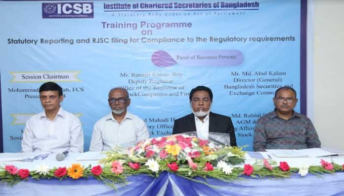 কর্পোরেট ডেস্ক : ইনস্টিটিউট অব চার্টার্ড সেক্রেটারীজ অব বাংলাদেশ (আইসিএসবি) শনিবার (২৫ মে) বাংলা মোটর-এ অবস্থিত আইসিএসবি অফিস প্রাঙ্গণে “সংবিধিবদ্ধ রিপোর্টিং, রেগুলেটরি প্রয়োজনীয়তা এবং আরজেএসসি ফাইলিং” বিষয়ক একটি প্রশিক্ষণ কর্মসূচির আয়োজন করে।