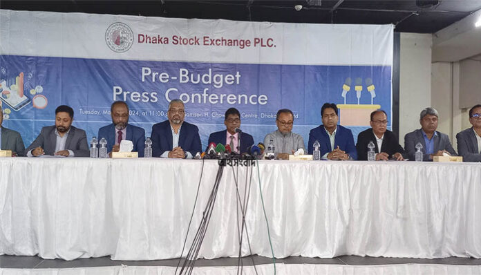 মঙ্গলবার (২৮ মে) ঢাকা ক্লাবে ডিএসইর প্রাক-বাজেট সংবাদ সম্মেলনে বাজেট প্রস্তাবনারগুলো তুলে ধরেন ডিএসইর চেয়ারম্যান ড. হাফিজ মো. হাসান বাবু।
