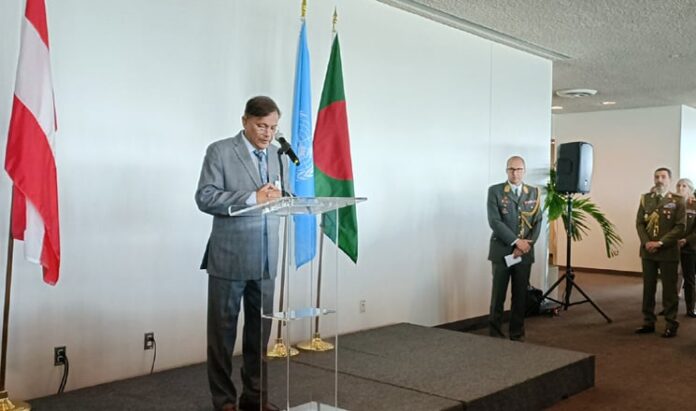 কর্পোরেট সংবাদ ডেস্ক: পররাষ্ট্রমন্ত্রী ড. হাছান মাহমুদ আন্তর্জাতিক শান্তিরক্ষী দিবস উদযাপন উপলক্ষে জাতিসংঘ সদর দপ্তরে বাংলাদেশ ও অস্ট্রিয়ার যৌথ অভ্যর্থনা অনুষ্ঠানে প্রধান অতিথি হিসেবে যোগ দেন। আজ ঢাকায় প্রাপ্ত এক শুক্রবার সংবাদ বিজ্ঞপ্তিতে জানানো হয়েছে, নিউইয়র্কে স্থানীয় সময় বৃহস্পতিবার অনুষ্ঠিত অভ্যর্থনা অনুষ্ঠানে পররাষ্ট্রমন্ত্রী জাতিসংঘের শান্তিরক্ষা কার্যক্রমে সর্বোচ্চ অবদান রাখা বাংলাদেশের অব্যাহত সমর্থন ও সহযোগিতার অঙ্গীকার পুনর্ব্যক্ত করেন। তিনি বলেন, ‘আমাদের জাতির পিতা বঙ্গবন্ধু শেখ মুজিবুর রহমানের বৈদেশিক নীতি অনুযায়ী বাংলাদেশ সবসময় শান্তির প্রচেষ্টায় জাতিসংঘের অগ্রভাগে রয়েছে।’