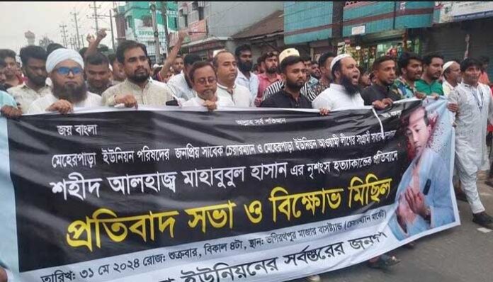 শুক্রবার ( ৩১ ) বিকেলে মেহেরপাড়া ইউনিয়নবাসীর আয়োজনে এ বিক্ষোভ ও প্রতিবাদ সভা করা হয়।
