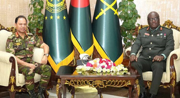 কর্পোরেট সংবাদ ডেস্ক: সেনাবাহিনী প্রধান জেনারেল এস এম শফিউদ্দিন আহমেদের সঙ্গে সৌজন্য সাক্ষাৎ করেছেন সিয়েরা লিওন সশস্ত্র বাহিনীর চিফ অব ডিফেন্স স্টাফ লেফটেন্যান্ট জেনারেল পিটার কাকোওউ লাভাহুন। আজ বুধবার (৫ জুন) সেনা দপ্তরে তিনি বাংলাদেশ সেনাপ্রধানের সঙ্গে সৌজন্য সাক্ষাৎ করেন।