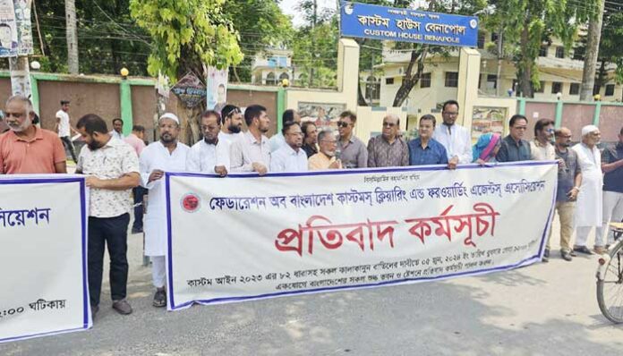 বুধবার (৫ জুন) বেলা ১২টায় বেনাপোল স্থলবন্দর সংলগ্ন “বেনাপোল কাস্টমস হাউজ” এর সম্মুখে নেতৃবৃন্দ এই কর্মসূচি পালণ করেন। এতে নেতৃত্ব দেন বেনাপোল সিএন্ডএফ এজেন্টস এসোসিয়েশনের কার্যকরী কমিটি’র সভাপতি-মোঃ শামছুর রহমান এবং সাধারণ সম্পাদক-ইমদাদুল হক লতা।