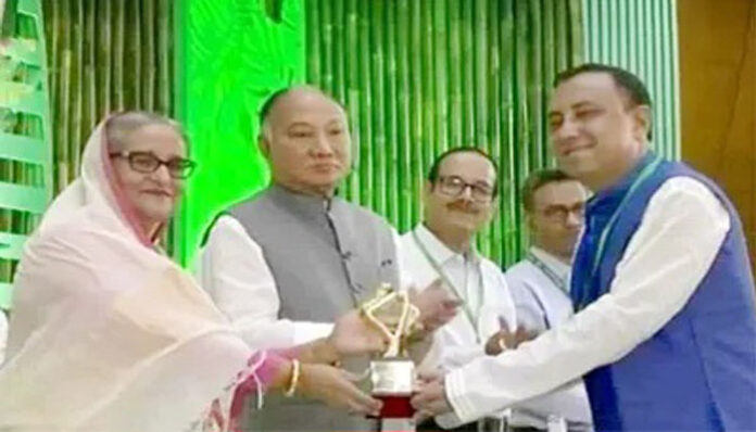 বুধবার (৫জুন) পরিবেশ দিবসে প্রধানমন্ত্রী শেখ হাসিনার কাছ থেকে জাতীয় পরিবেশ পদক সম্মাননা গ্রহণ করেন মৌলভীবাজার পৌরসভার মেয়র মো. ফজলুর রহমান। ওই দিন সকালে রাজধানী ঢাকার বঙ্গবন্ধু আন্তর্জাতিক সম্মেলন কেন্দ্রে বন, পরিবেশ ও জলবায়ু বিষয়ক মন্ত্রী সাবের হোসেন চৌধুরীর সভাপতিত্বে বর্ণাঢ্য অনুষ্ঠানে প্রধানমন্ত্রী শেখ হাসিনা প্রধান অতিথি হিসেবে উপস্থিত থেকে মৌলভীবাজার পৌরসভার মেয়র আলহাজ্ব মো. ফজলুর রহমানের হাতে এ সম্মাননা তুলে দেন।