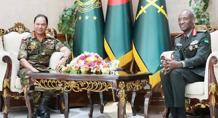 কর্পোরেট সংবাদ ডেস্ক : রুয়ান্ডা ডিফেন্স ফোর্সের চিফ অব ডিফেন্স স্টাফ জেনারেল এমকে মুবারাখ বাংলাদেশ সেনাবাহিনী প্রধান জেনারেল এস এম শফিউদ্দিন আহমেদের সঙ্গে সৌজন্য সাক্ষাৎ করেছেন। আজ বুধবার (১২ জুন) ঢাকা সেনানিবাসস্থ সেনাসদরে এ সাক্ষাৎ করেন।
