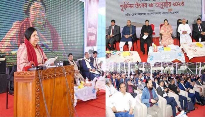 শনিবার (২৮ জানুয়ারি) ড. শিরিন শারমীন চৌধুরী নটরডেম কলেজ মাঠে নটরডেম কলেজ অ্যালামনাই এসোসিয়েশনের উদ্যোগে আয়োজিত ‘প্রতিষ্ঠার ৭৪’ বছর পুনর্মিলন উৎসব’র উদ্বোধনী অনুষ্ঠানে প্রধান অতিথির বক্তব্যে এ কথা বলেন।