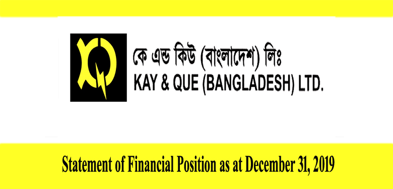 Statement of Financial Position as at December 31, 2019 of Kay & Que (Bangladesh) Ltd.