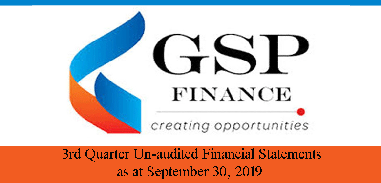 3rd Quarter Un-audited Financial Statements as at September 30, 2019 of GSP Finance Company (BD.) Ltd.