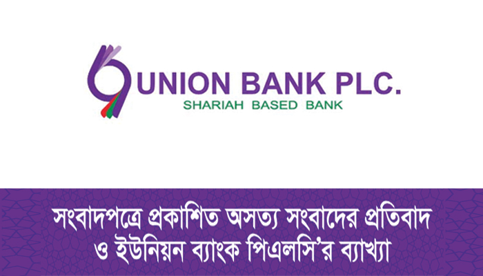 সংবাদপত্রে প্রকাশিত অসত্য সংবাদের প্রতিবাদ ও ইউনিয়ন ব্যাংক পিএলসি’র ব্যাখ্যা