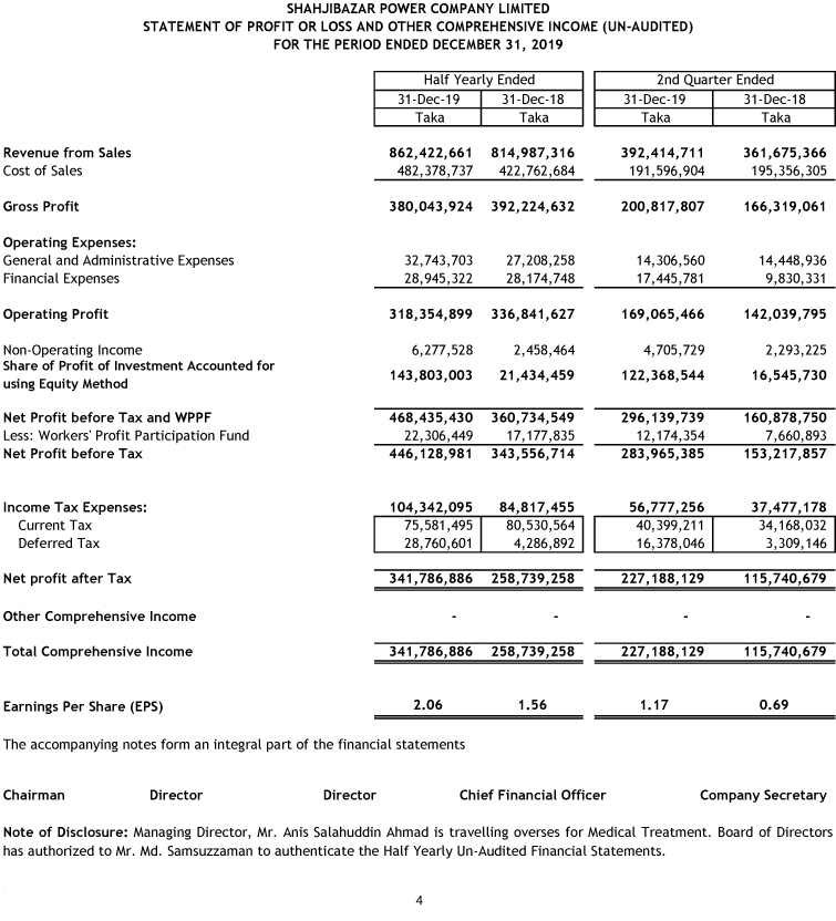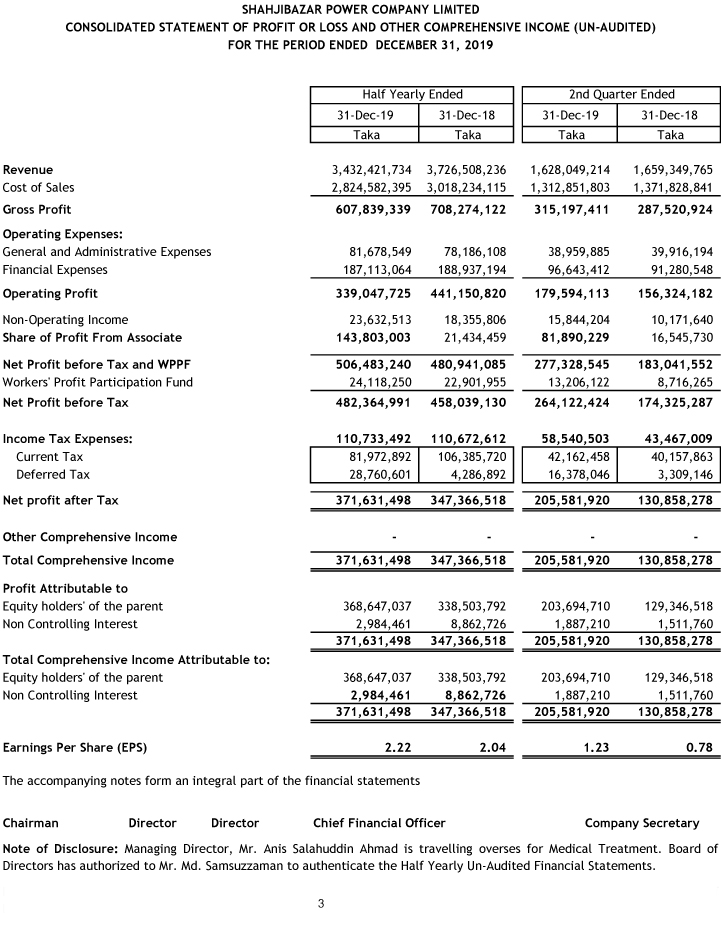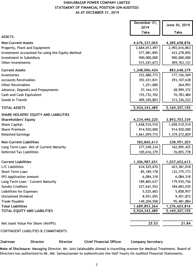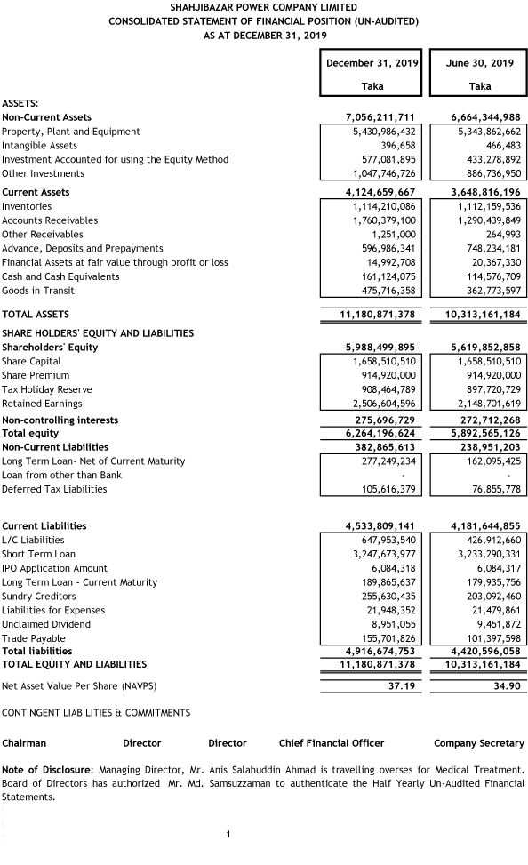 Consolidated Statement of Financial Position (Un-Audited) of Shahjibazar Power Company Ltd.