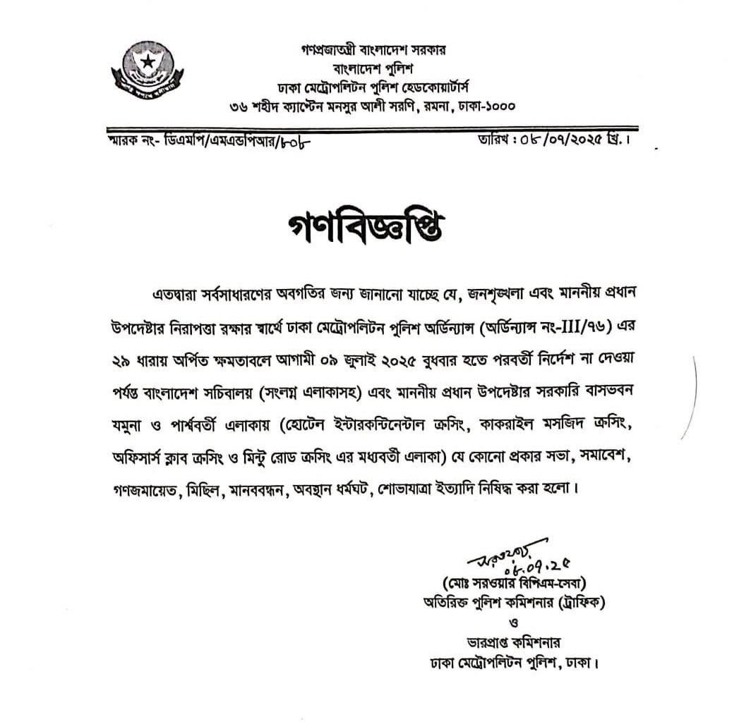 ৮. রোগীর সার্বিক অবস্থা বর্তমানে অত্যন্ত আশঙ্কাজনক। তবে মেডিকেল বোর্ড সর্বোচ্চ পেশাদারিত্ব, আন্তরিকতা ও সমন্বয়ের মাধ্যমে সর্বোত্তম চিকিৎসা নিশ্চিত করতে নিরলসভাবে কাজ করে যাচ্ছে।