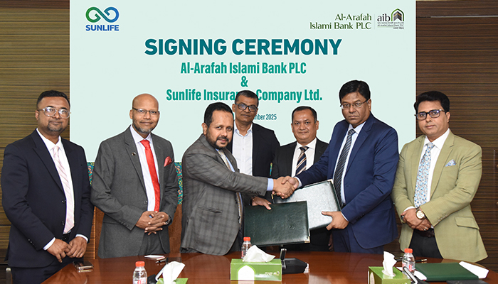 আল আরাফাহ ইসলামী ব্যাংকের সঙ্গে সানলাইফ ইন্স্যুরেন্স কোম্পানির চুক্তি