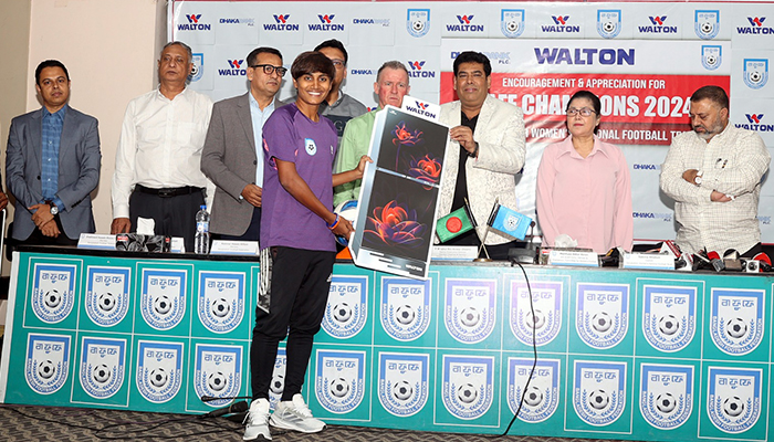 সাফ চ্যাম্পিয়ন মেয়েদের ওয়ালটনের সংবর্ধনা