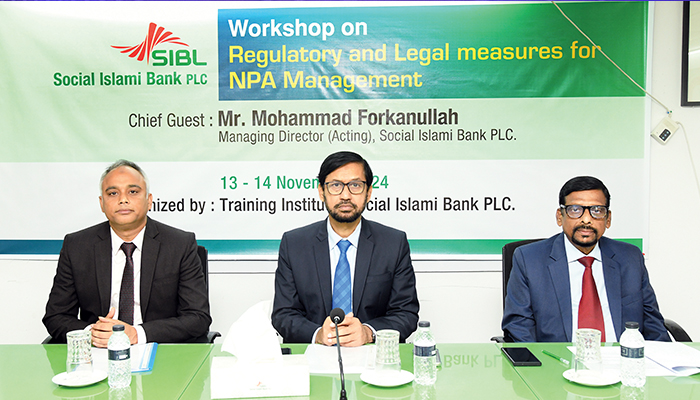 সোশ্যাল ইসলামী ব্যাংকে “রেগুলেটরি এন্ড লিগ্যাল মেজারস ফর এনপিএ ম্যানেজমেন্ট” এর উপর ওয়ার্কশপ অনুষ্ঠিত