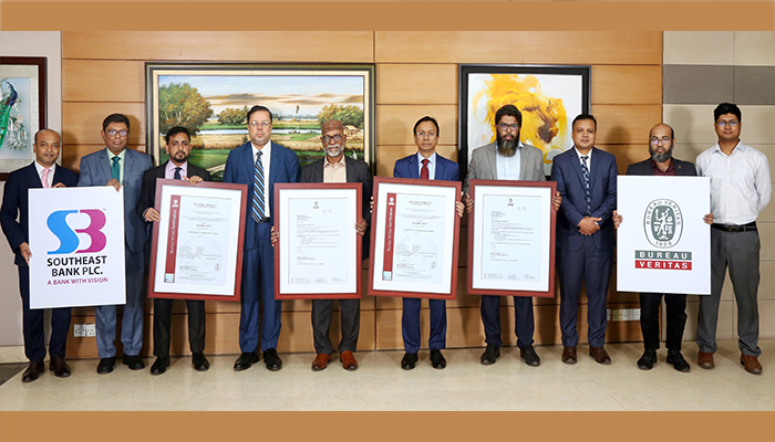 আন্তর্জাতিক বিভাগ বাংলাদেশে প্রথম আইএসও ৯০০১:২০১৫ সনদ অর্জন করলো সাউথইস্ট ব্যাংক