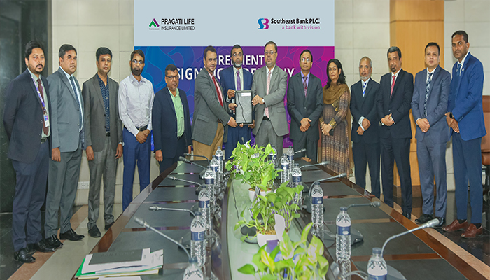সাউথইস্ট ব্যাংক ও প্রগতি লাইফ ইন্সুরেন্সের সাথে সমঝোতা স্মারক স্বাক্ষর