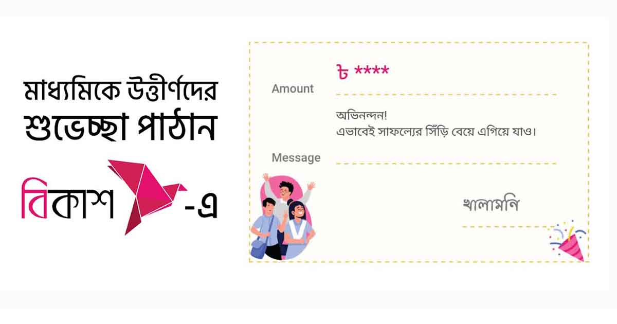 এসএসসি উত্তীর্ণদের শুভেচ্ছা জানাতে বিকাশে অভিনন্দন কার্ড