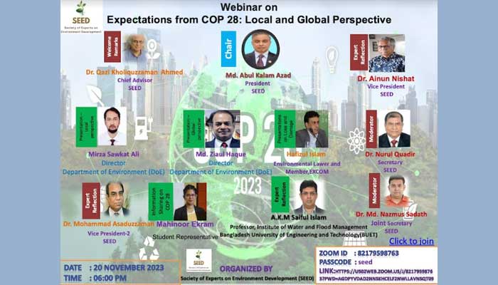 “কপ-২৮: স্থানীয় ও বৈশ্বিক দৃষ্টিকোণ থেকে প্রত্যাশা বিষয়ক সীডের ওয়েবিনার”