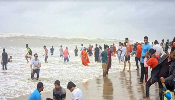 কক্সবাজার সমুদ্র সৈকতে ঢেউ দেখতে মানুষের ঢল
