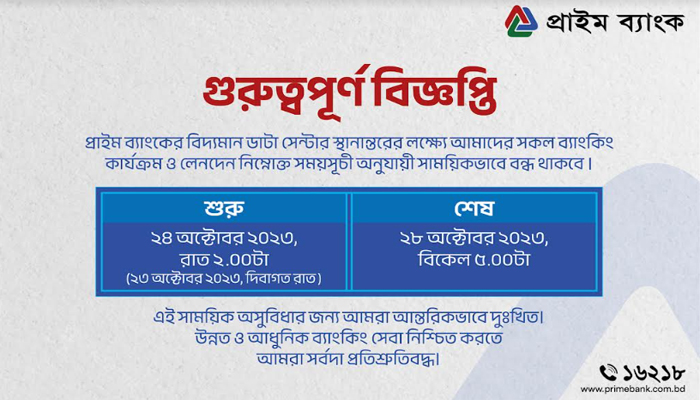 ডাটা সেন্টার স্থানান্তর করছে প্রাইম ব্যাংক
