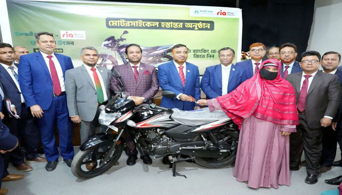 ইসলামী ব্যাংক-রিয়া মানি ট্রান্সফার রেমিট্যান্স উৎসবে মোটরসাইকেল হস্তান্তর