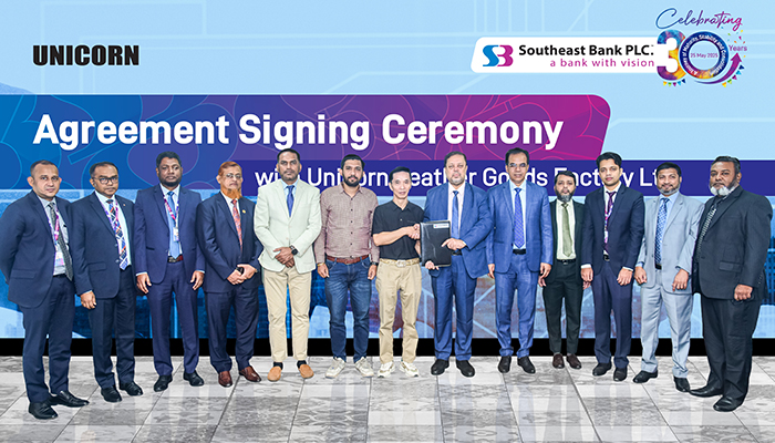 সাউথইস্ট ব্যাংক ও ইউনিকর্ন লেদার গুডস ফ্যাক্টরির মধ্যে সমঝোতা স্মারক স্বাক্ষর