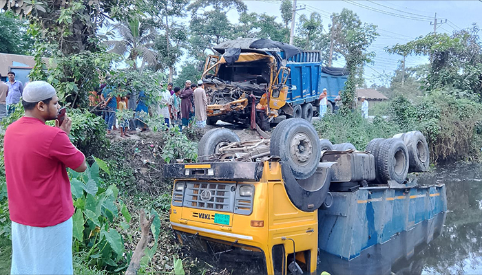 দাঁড়িয়ে থাকা ট্রাকের পেছনে বালুভর্তি ট্রাকের ধাক্কা, নিহত ২