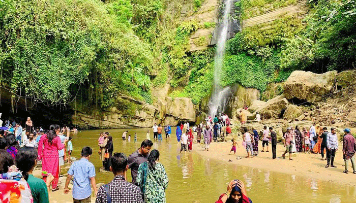 প্রকৃতি কন্যা মাধবকুণ্ড জলপ্রপাতে পর্যটকদের উপচেপড়া ভিড়