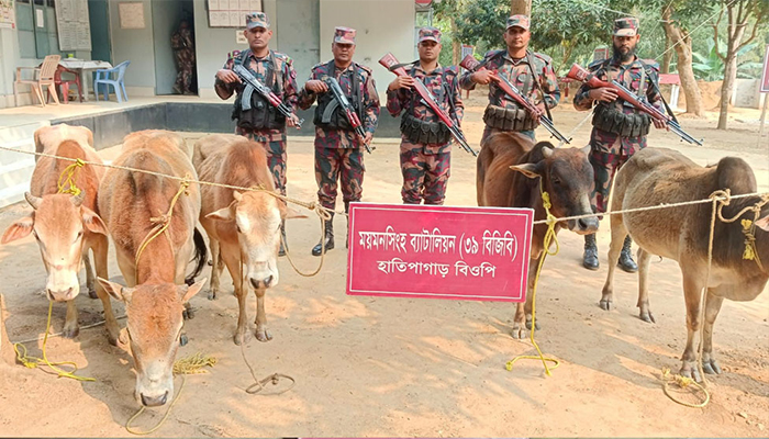 হালুয়াঘাট সীমান্তে ভারতীয় গরু ও মদ-চিনিসহ আটক ২
