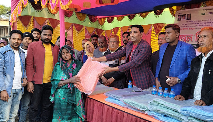 তালায় অসহায় ও দুস্ত শীতার্তদের মাঝে কম্বল বিতরণ