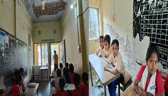 রায়গঞ্জে জরাজীর্ণ ভবনে আতঙ্ক নিয়ে পাঠদান