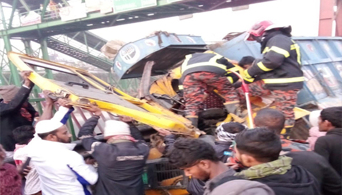 সড়ক দুর্ঘটনায় ট্রাকের ভিতর থেকে চালককে উদ্ধার করলো ফায়ার সার্ভিস