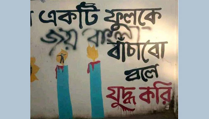 নালিতাবাড়িতে জুলাই বিপ্লবের গ্রাফিতির উপর লেখা ‘জয় বাংলা’ ‘জয় বঙ্গবন্ধু’