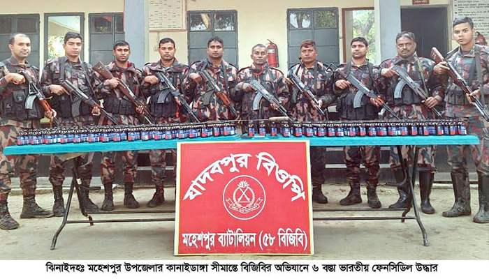 মহেশপুর সীমান্তে ১৬ বস্তা ভারতীয় ফেনসিডিল ফেলে পালালো চোরাকারবারীরা