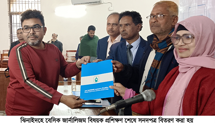 বেসিক জার্নালিজম বিষয়ক প্রশিক্ষণ শেষে সনদপত্র বিতরণ